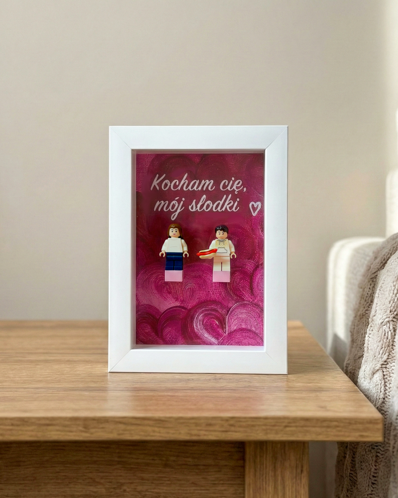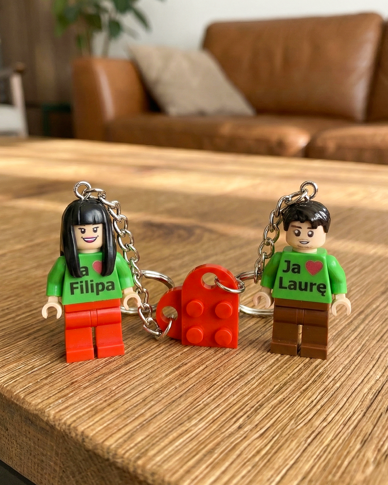 Nie — nie drukujemy logo, znaków towarowych, symboli firm trzecich ani motywów militarnych na elementach minifigurek. Tworzymy wyłącznie spersonalizowane postacie na podstawie wyglądu osób.