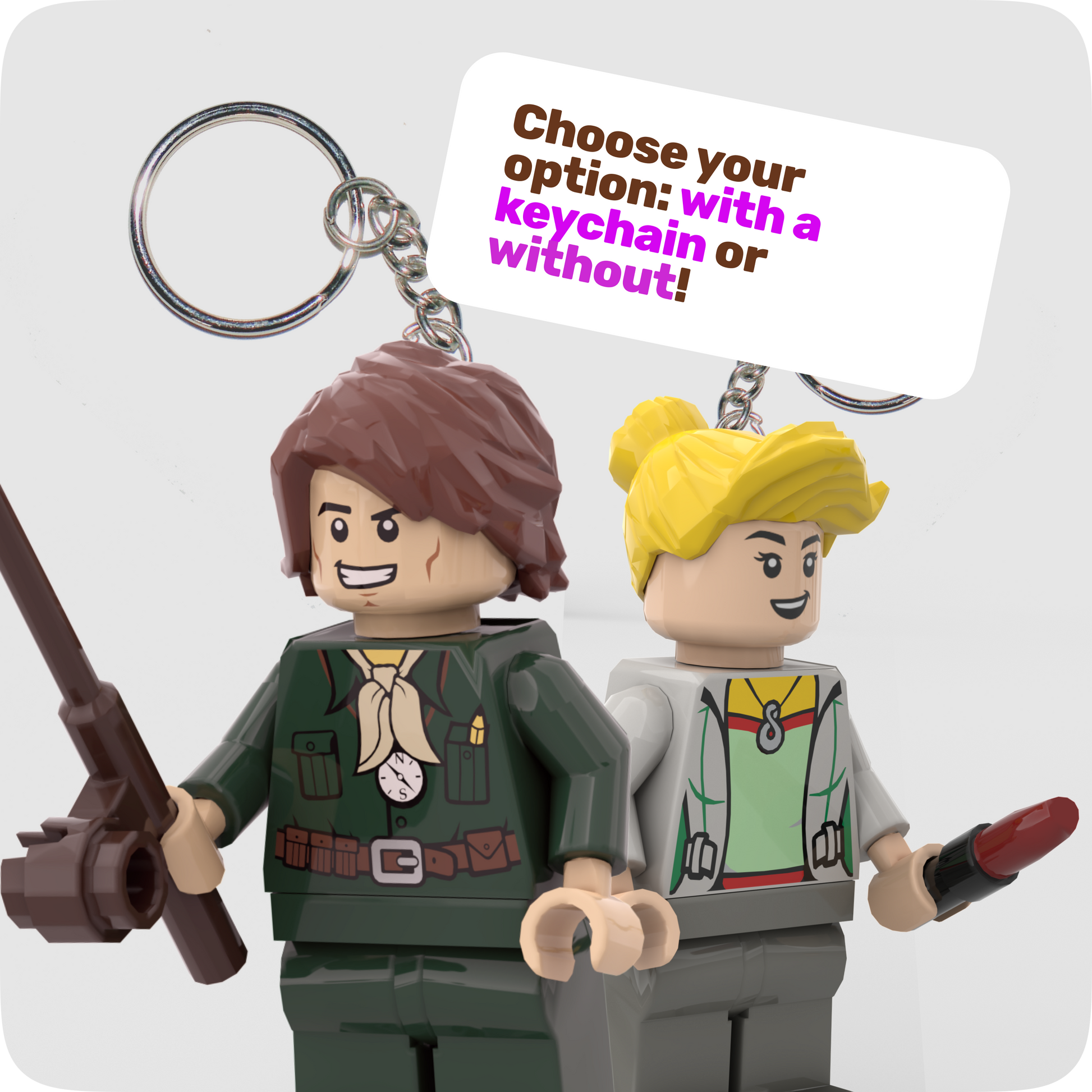 All main parts of the figurine (head, torso, legs) are original, brand-new LEGO® elements, onto which we apply our custom, durable artwork.