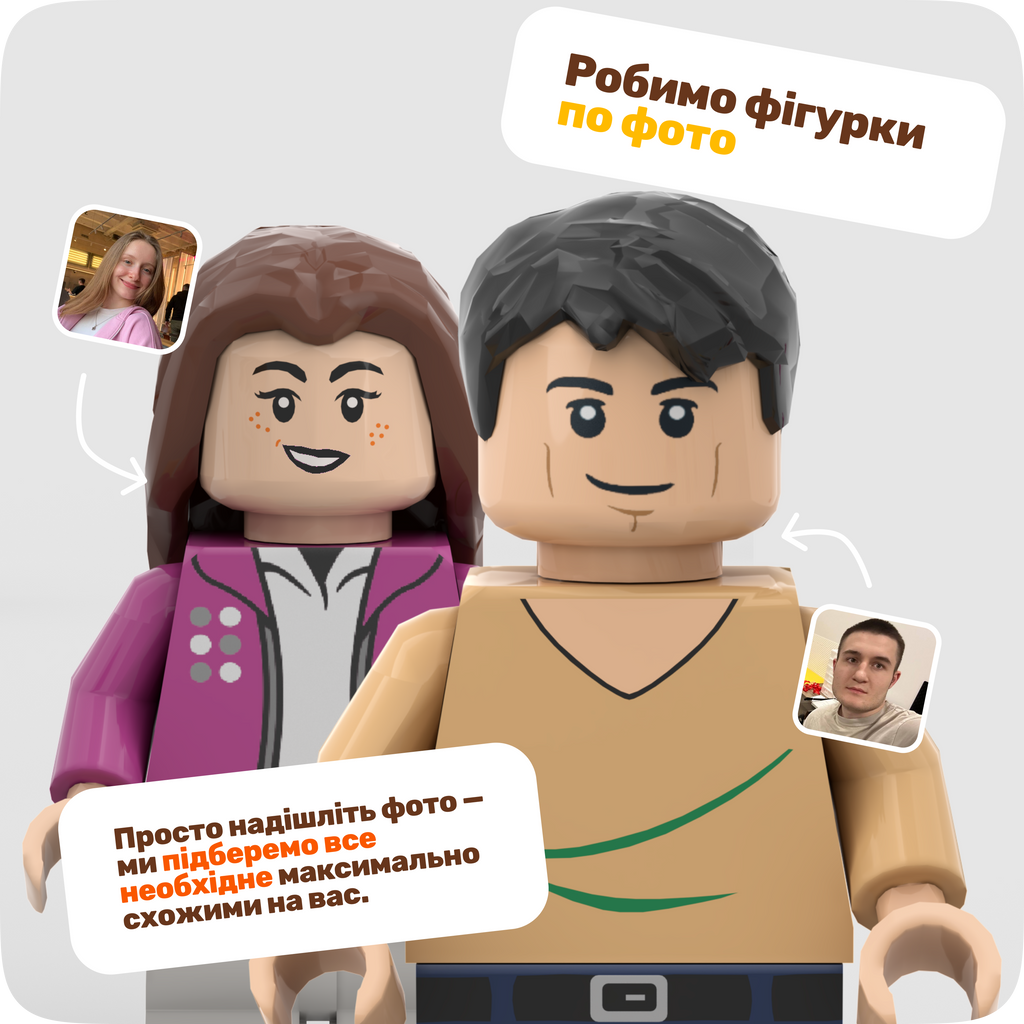Натисніть кнопку "Створити" вище — ви перейдете до нашого онлайн-конфігуратора, в якому можна обрати всі елементи: зачіску, обличчя, одяг, аксесуари та багато іншого. Ціна залежить від обраних параметрів і відображається у лівому верхньому куті конфігуратора.Не маєте часу створювати самостійно? Надішліть свої фото у будь-який месенджер (Instagram, e-mail) — ми створимо фігурку за вас. Без додаткових оплат! Відповідаємо дуже швидко.